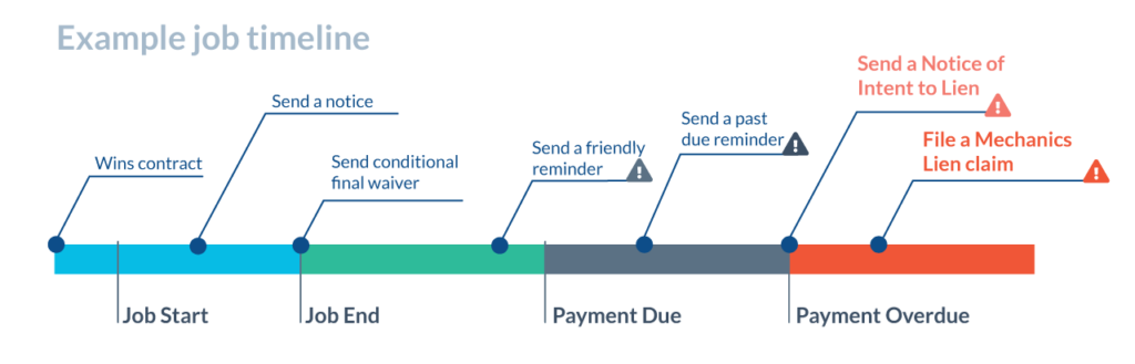 The lien filing timeline is usually tied to the completion of the project, or the last day you provide labor or materials. It won’t wait for your notice of intent to lien delivery, and it usually won’t even wait for a holiday or weekend! Download a free chart to learn your lien and notice deadlines.